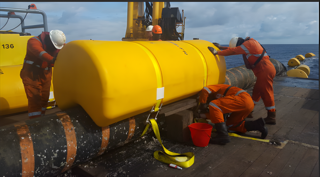 Soluciones estratégicas e integrales para la gestión y soporte de tuberías en entornos acuáticos, mediante la instalación de flotadores que optimizan la flotabilidad, la estabilidad estructural y la continuidad operativa del sistema.